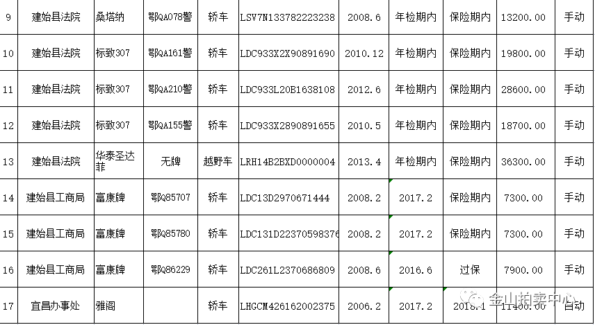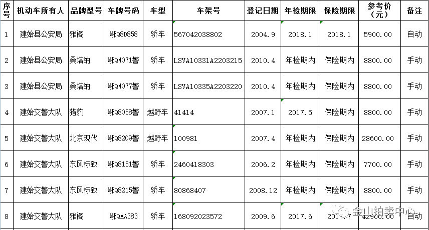 我公司定于2017年1月21日上午9:00时在建始县茨泉宾馆五楼会议室举行“建始县第二批党政机关及参公事业单位公务用车处置拍卖会”,具体事宜公告如下: