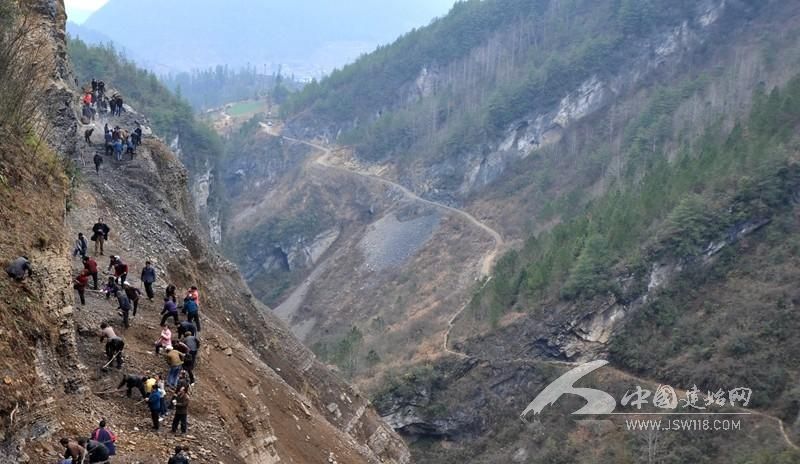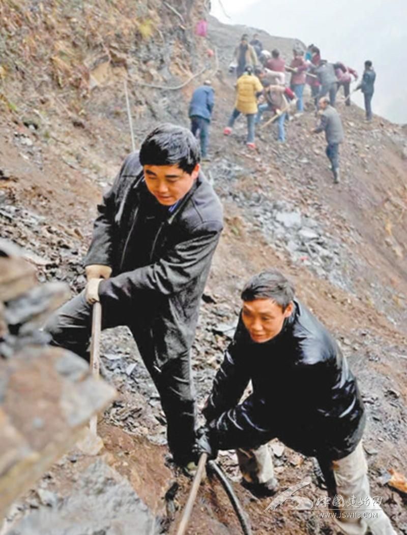 “放炮!”“三、二、一,起爆!” 当年,王光国带着村民,在悬崖上腰系绳索像荡秋千一样一锤一锤打炮眼,在峭壁上如蚂蚁啃骨头一样一铲一镐撬石块。渴了,喝山泉水;饿了,吃烧洋芋。早出晚归,日复一日,年复一年。