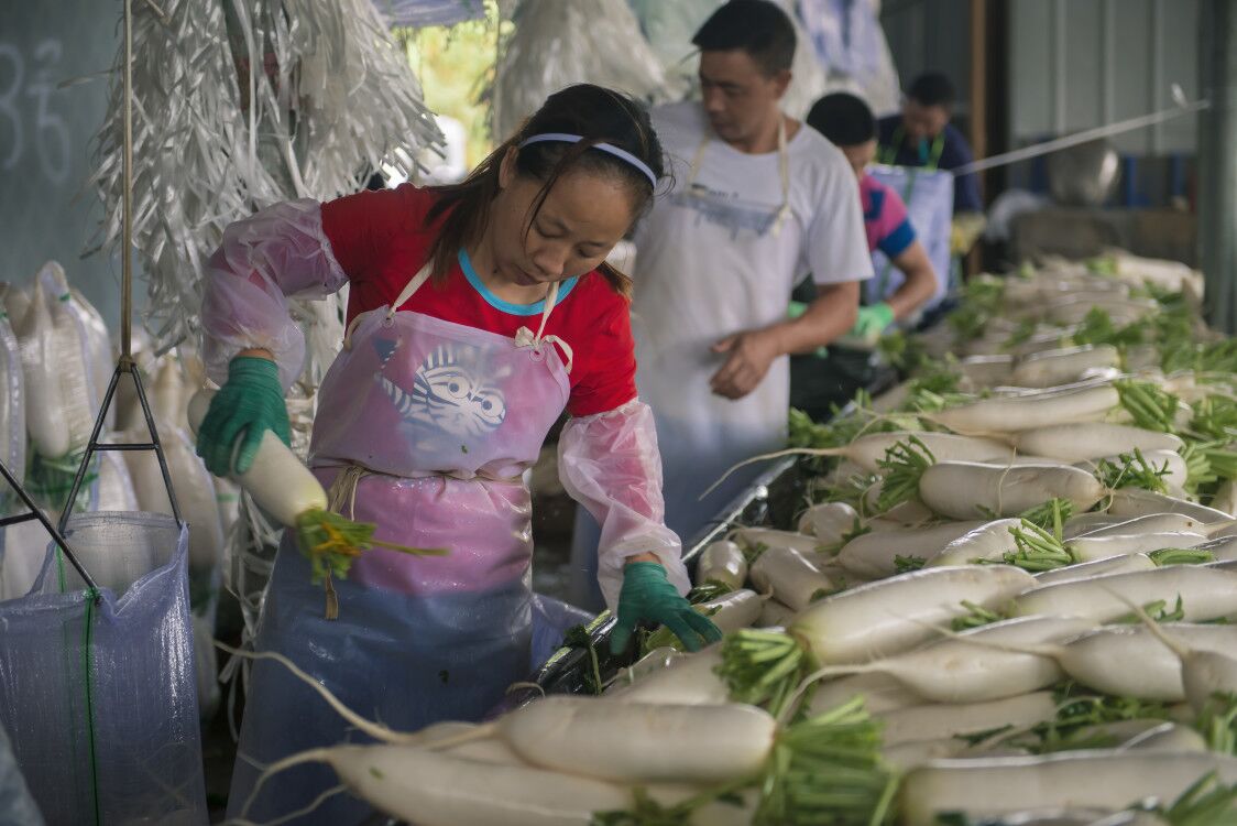 建始县融媒体中心(融媒体记者侯康)8月27日,记者走进建始县官店镇永兴坪村,只见七八名菜农正在忙碌地采收、背运、堆放成熟的萝卜,拉萝卜的小卡车田间地坎来回穿梭着,清洗车间的工人麻利地将清洗好的萝卜打包封袋,现场一派忙碌的丰收场景。